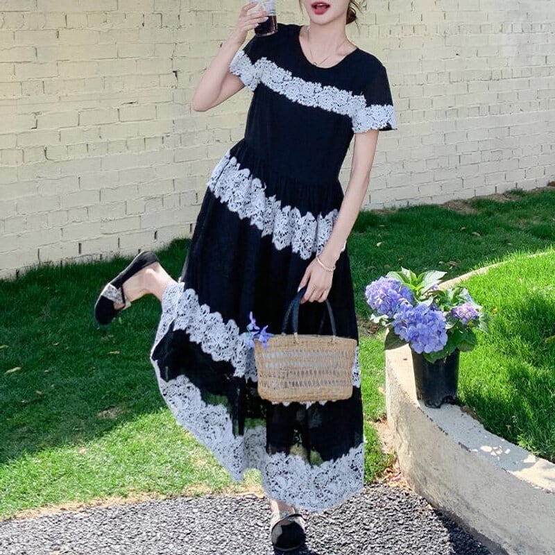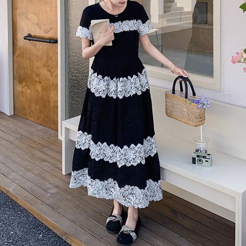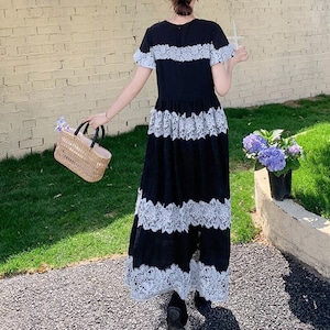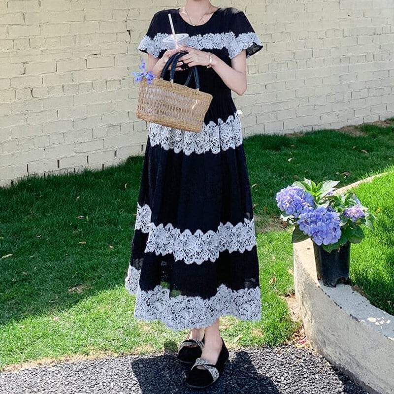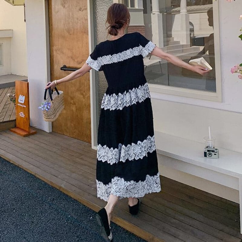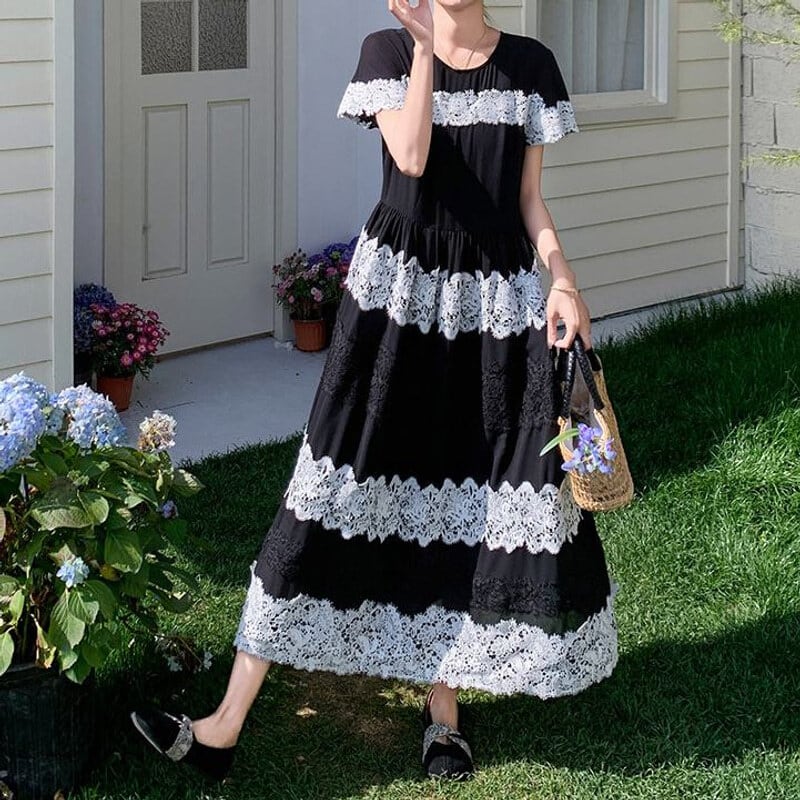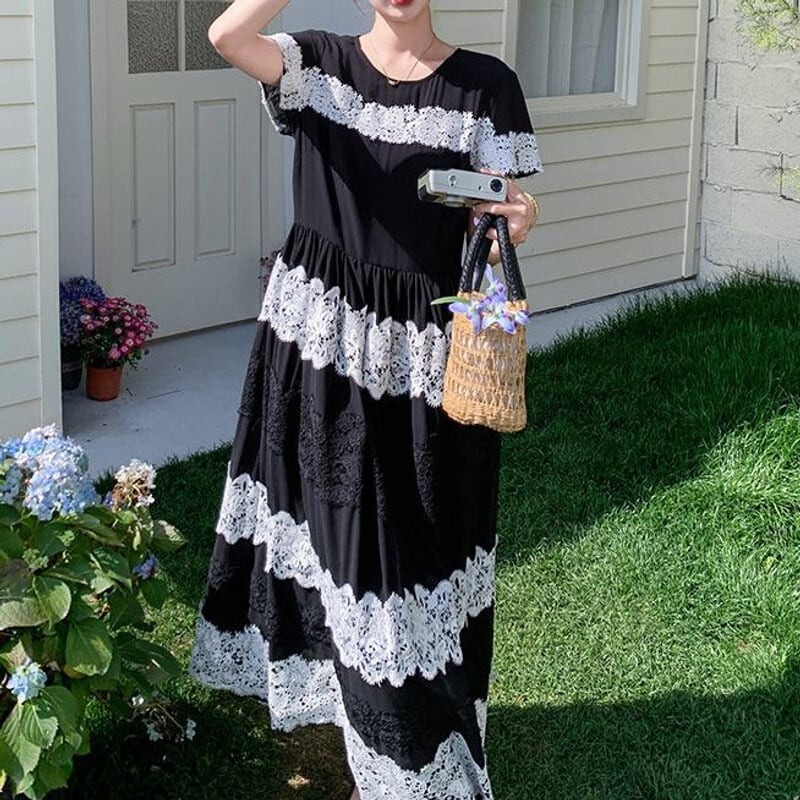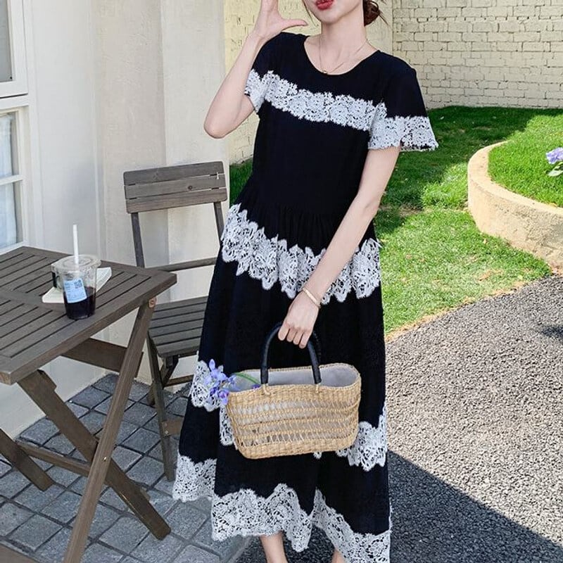 Lace border long dress M859