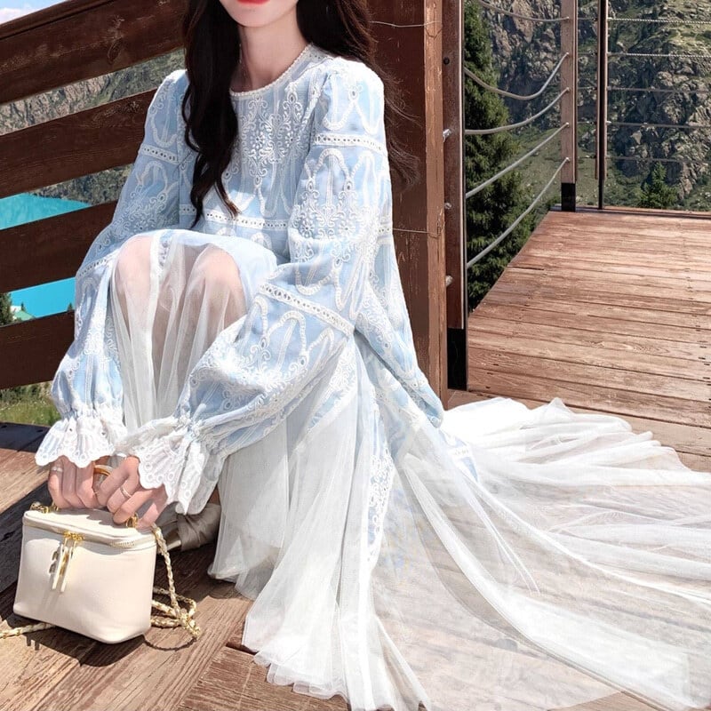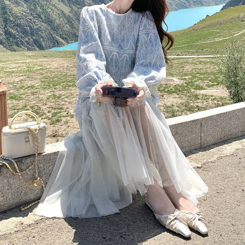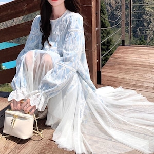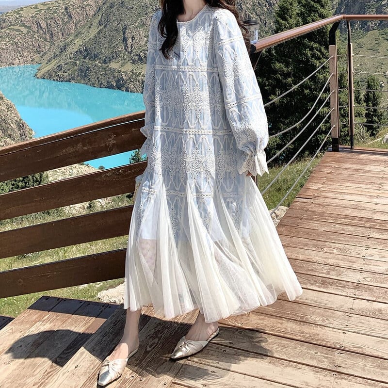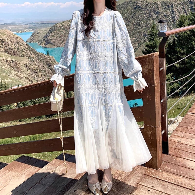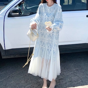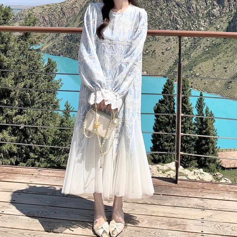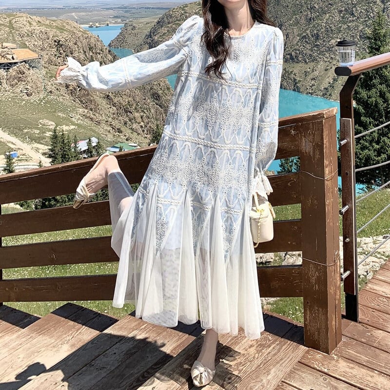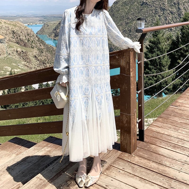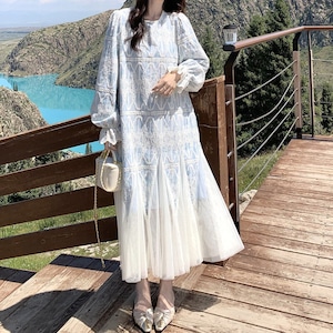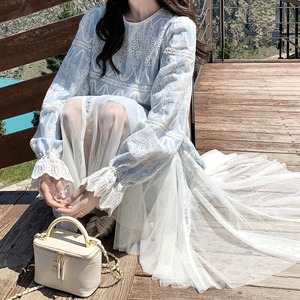 Tulle hem embroidery flare dress M863