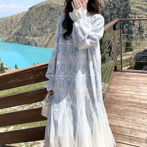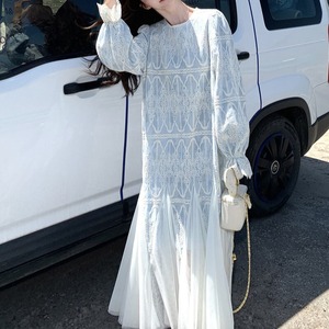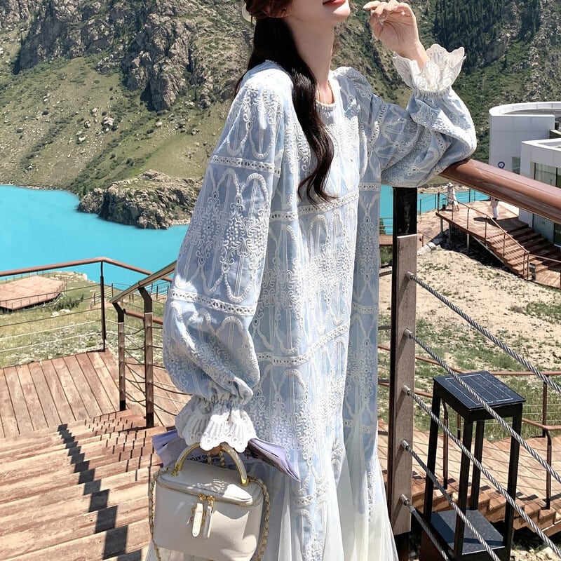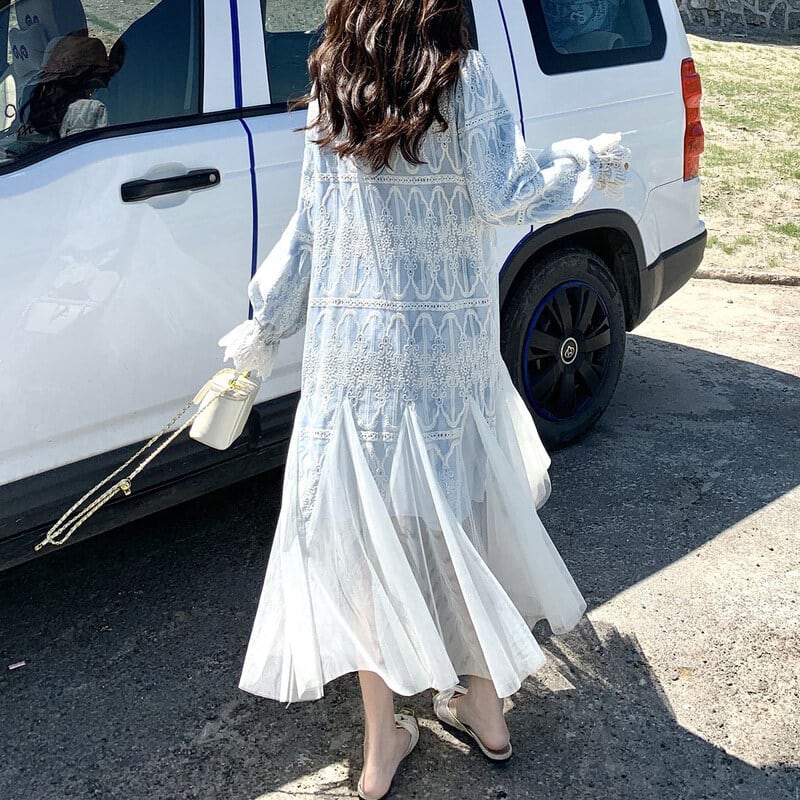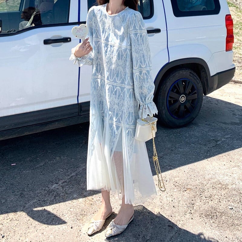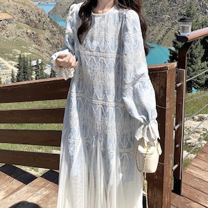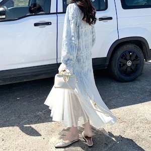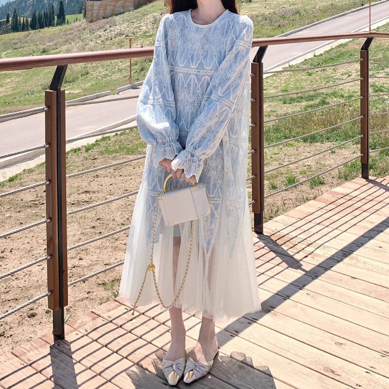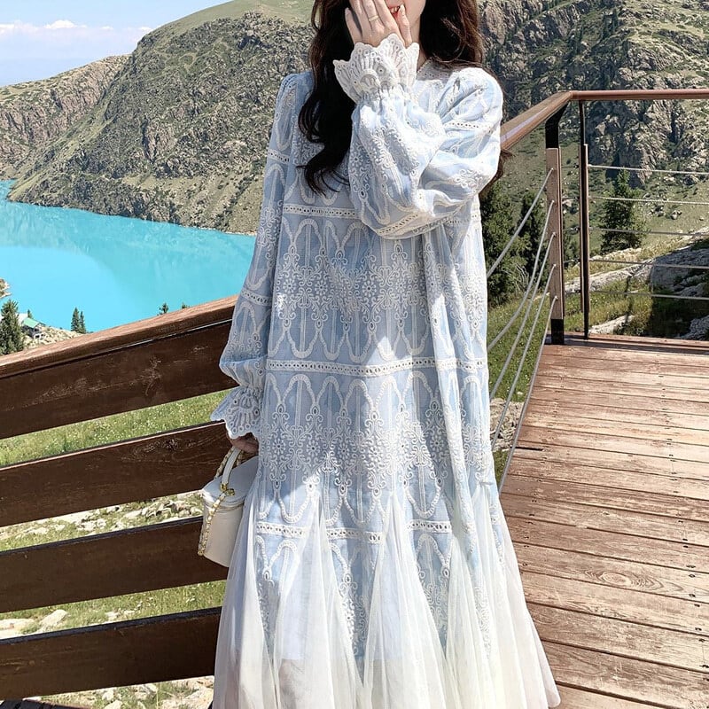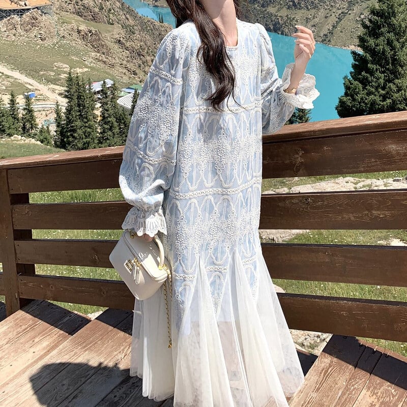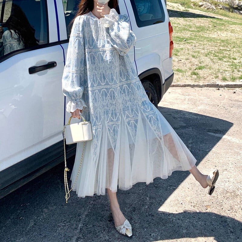 Tulle hem embroidery flare dress M863