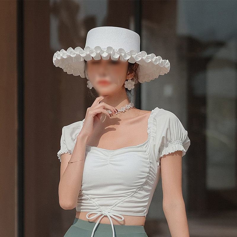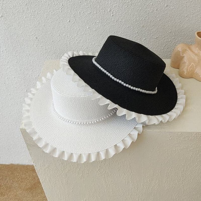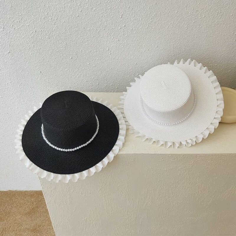Frill trim straw hat M894