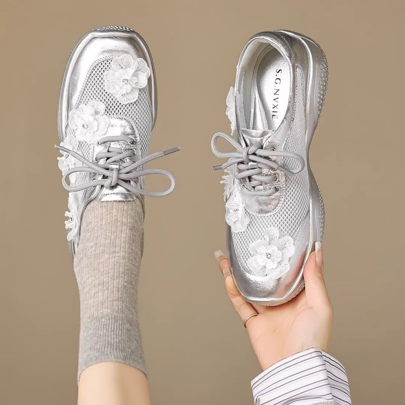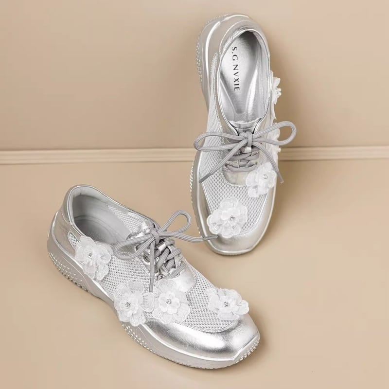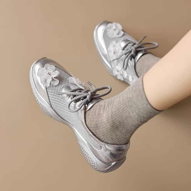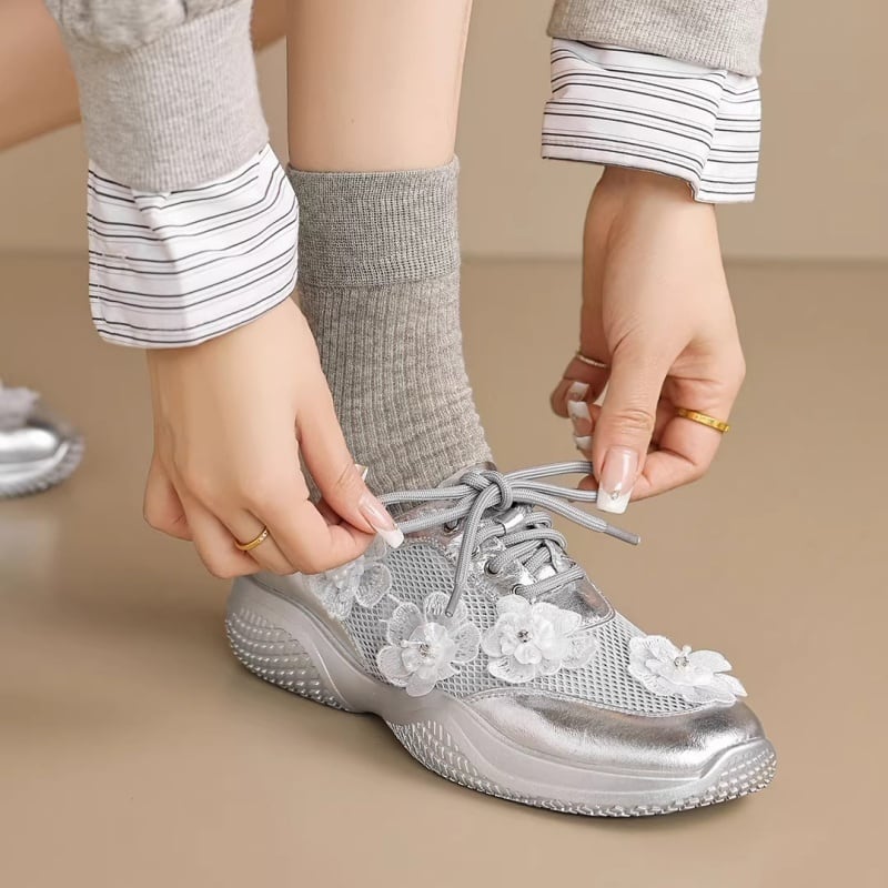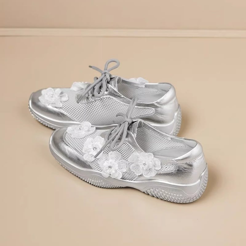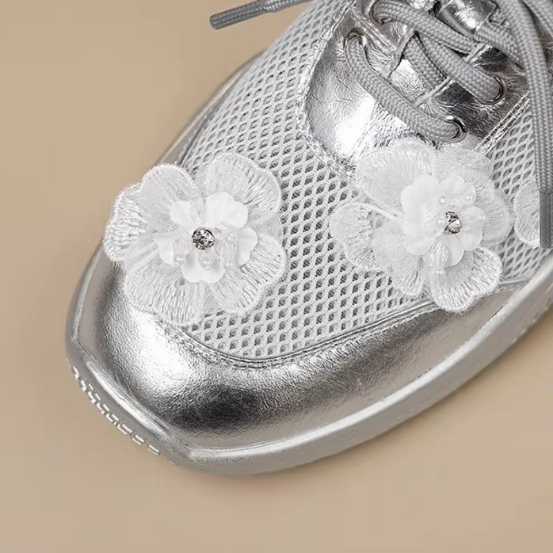 【34-40】Flower mesh metallic sneaker M550