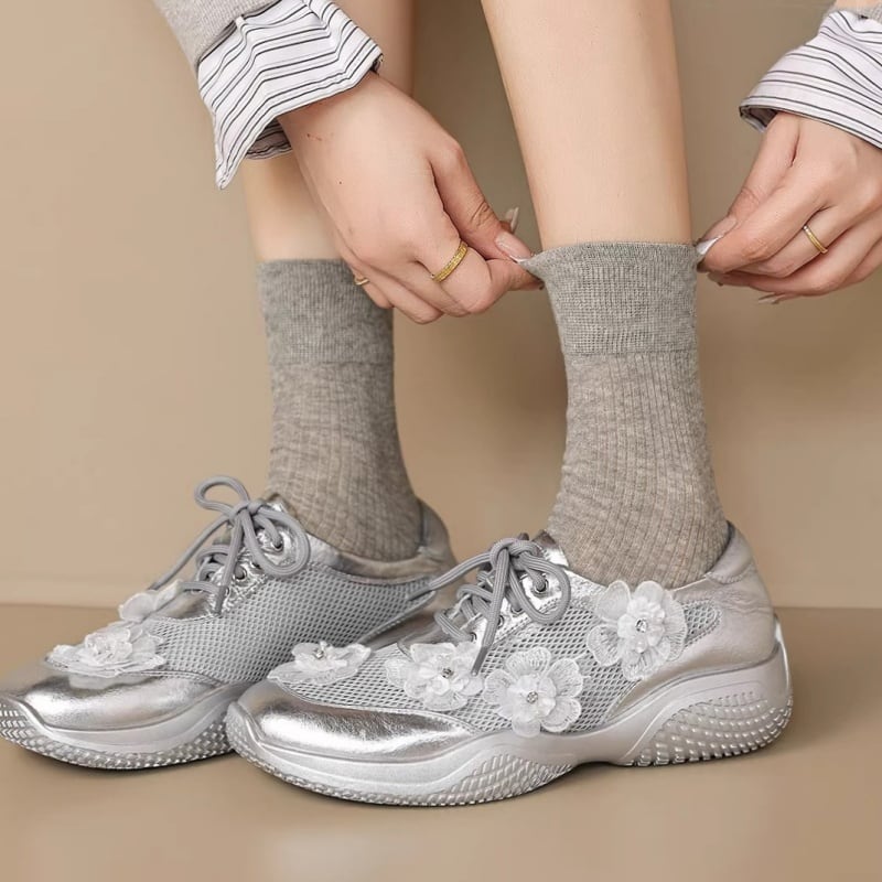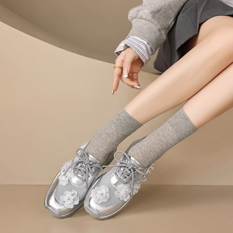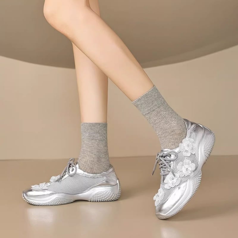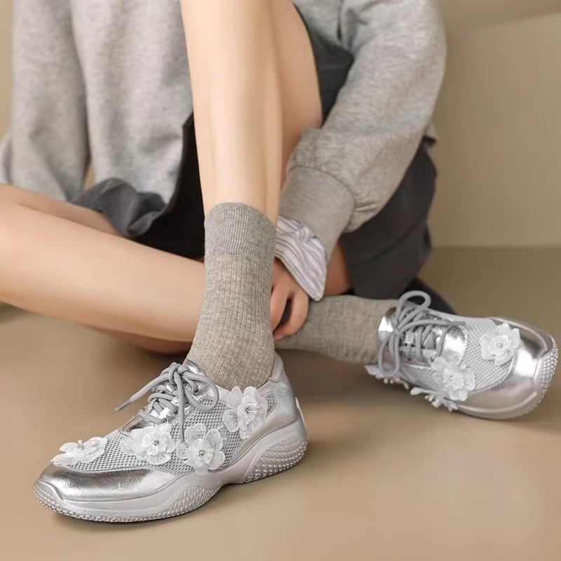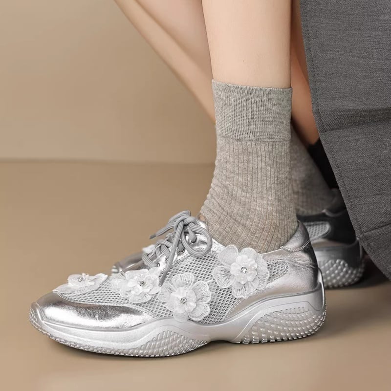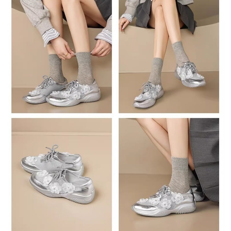 【34-40】Flower mesh metallic sneaker M550