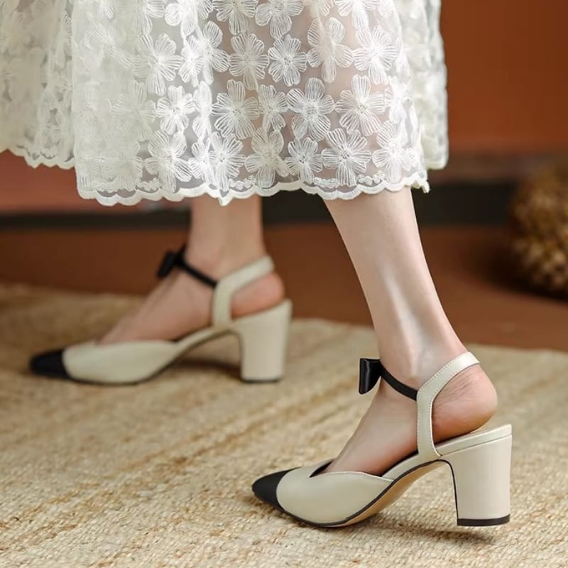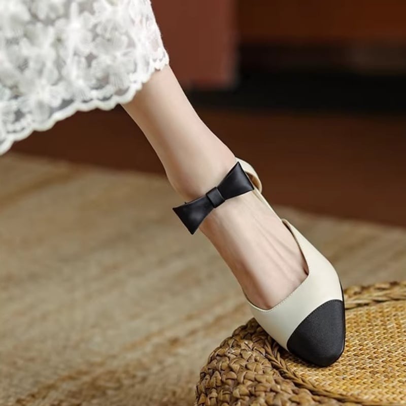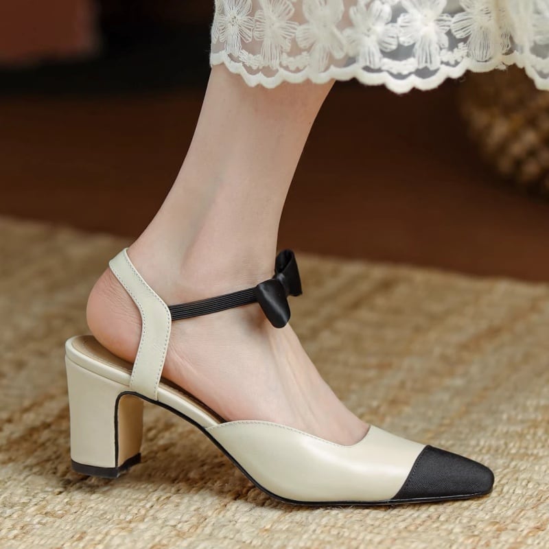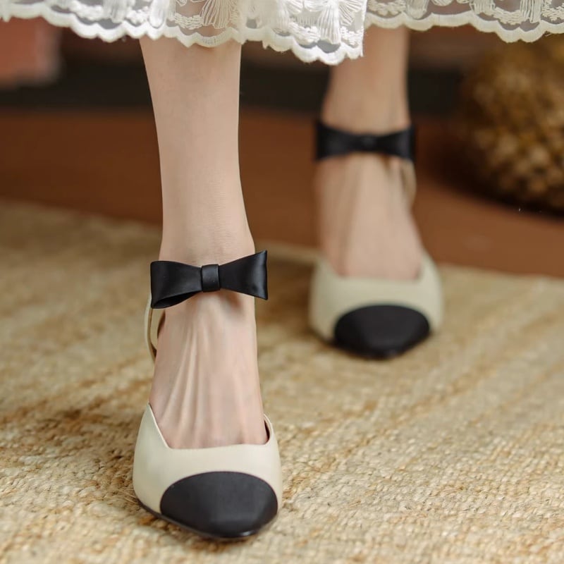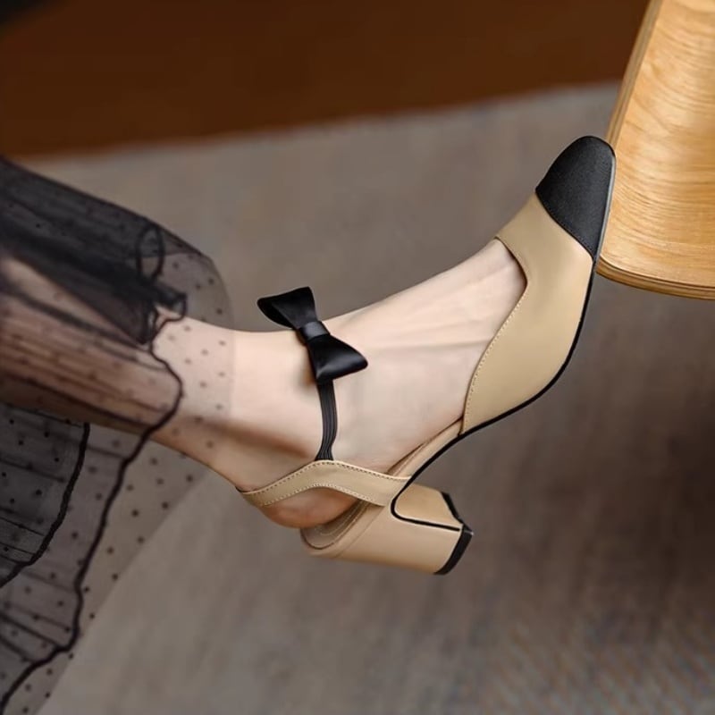 【35-43】Ribbon strap mid heel pumps M436
