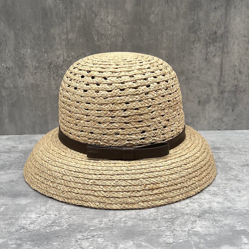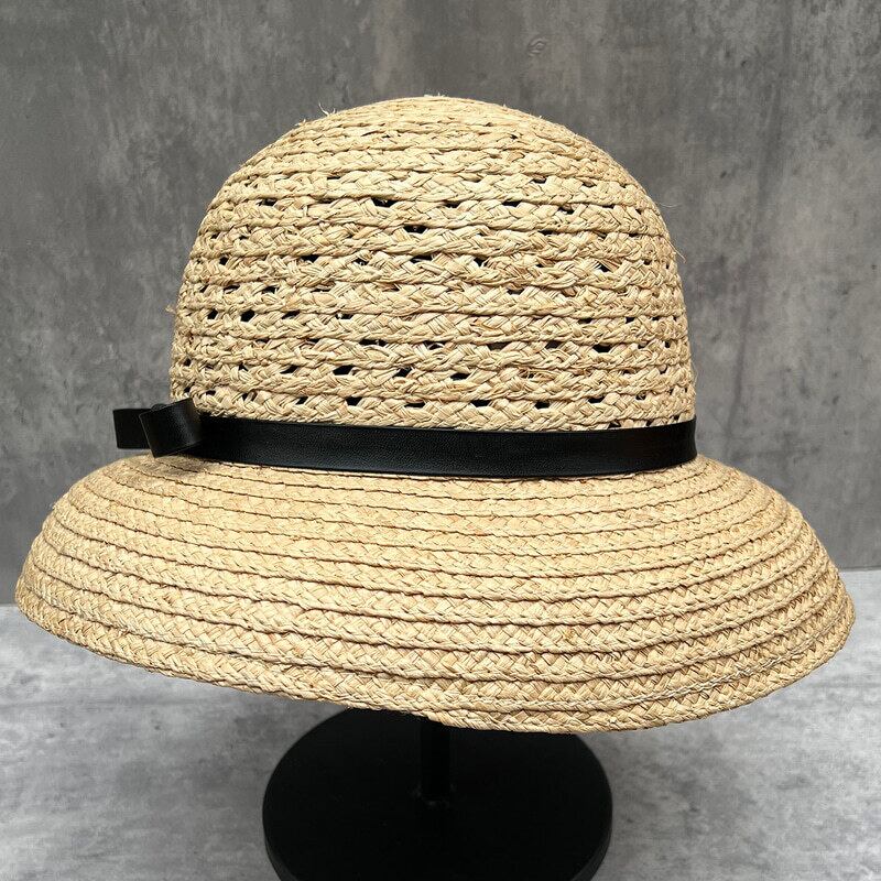 PU leather ribbon straw hat M972