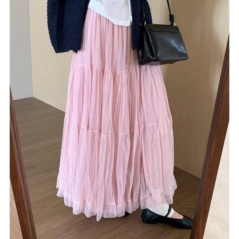 全5色/Airy tiered tulle skirt M2810