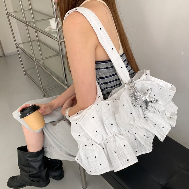 Polka dot ruffle tote bag M1129