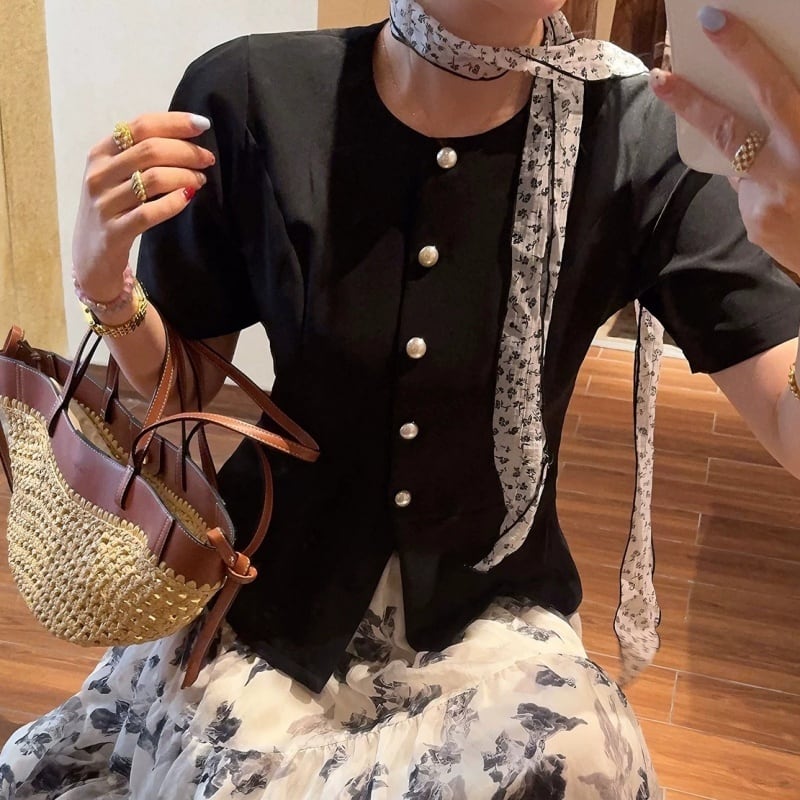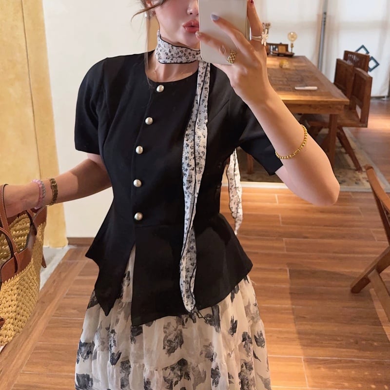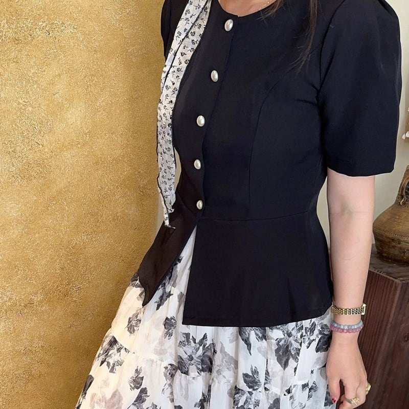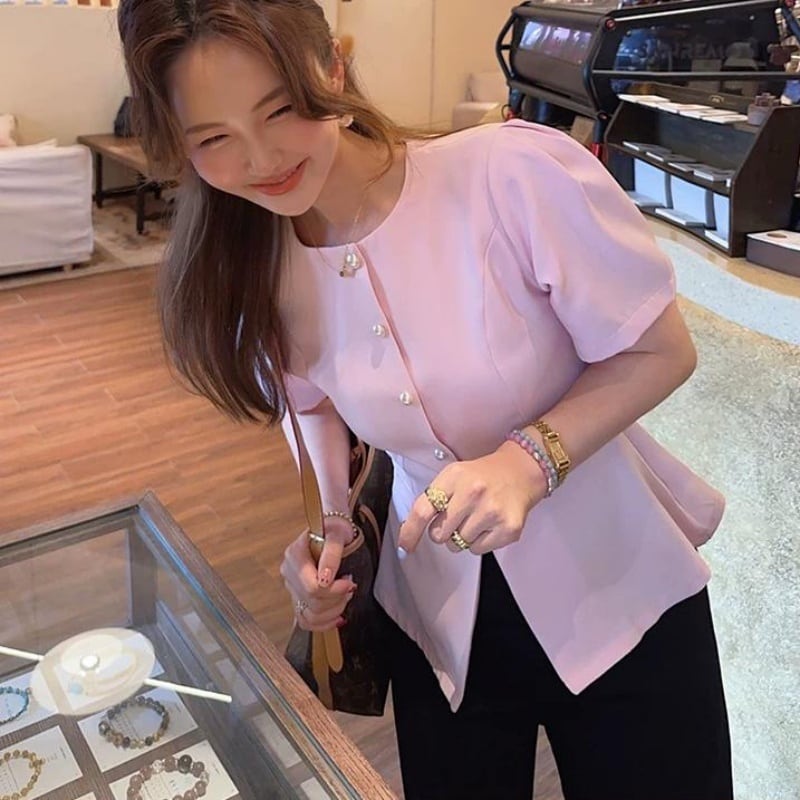 Pearl button peplum top M2897