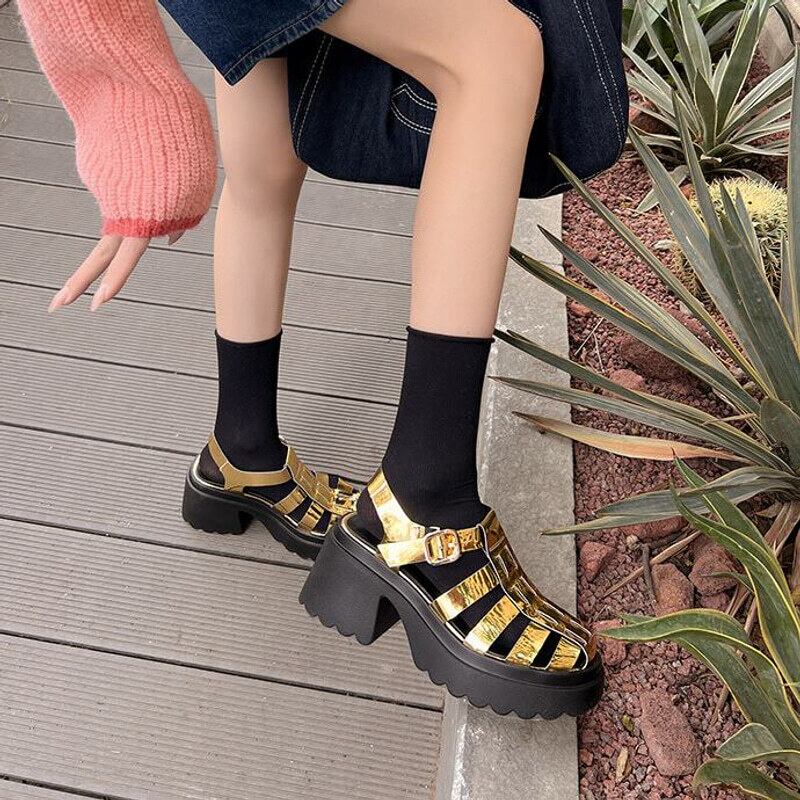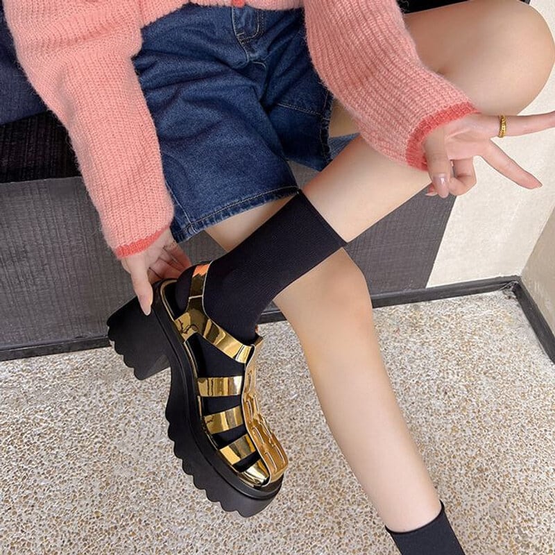 Metallic platform gurkha sandals M2879