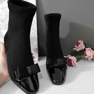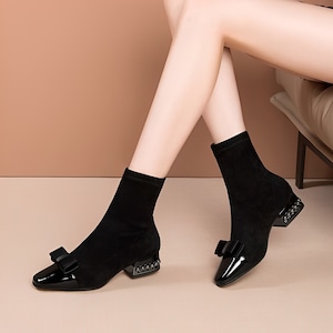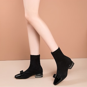 【大人気ロングセラー】Square ribbon toe short boots M711