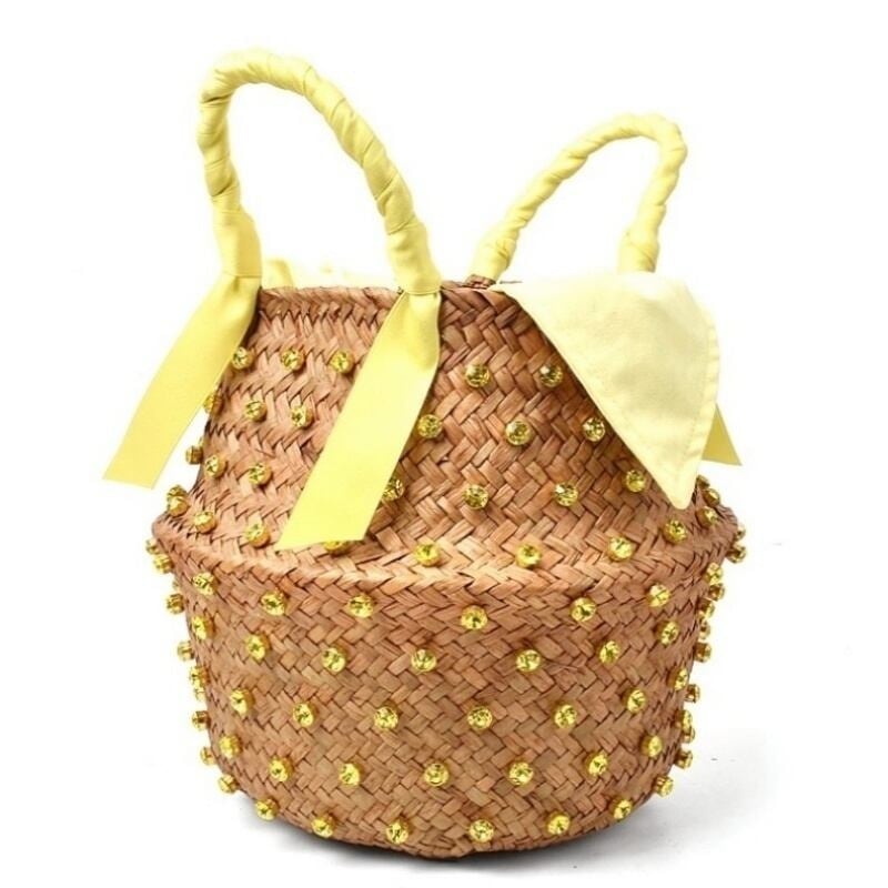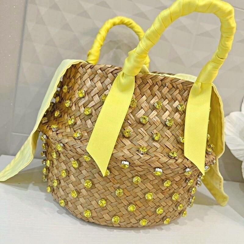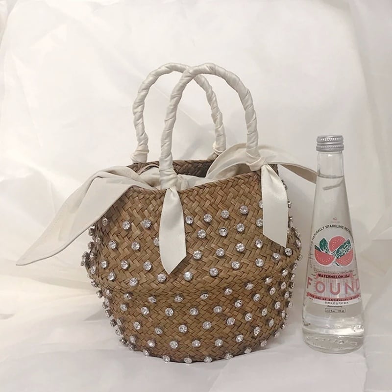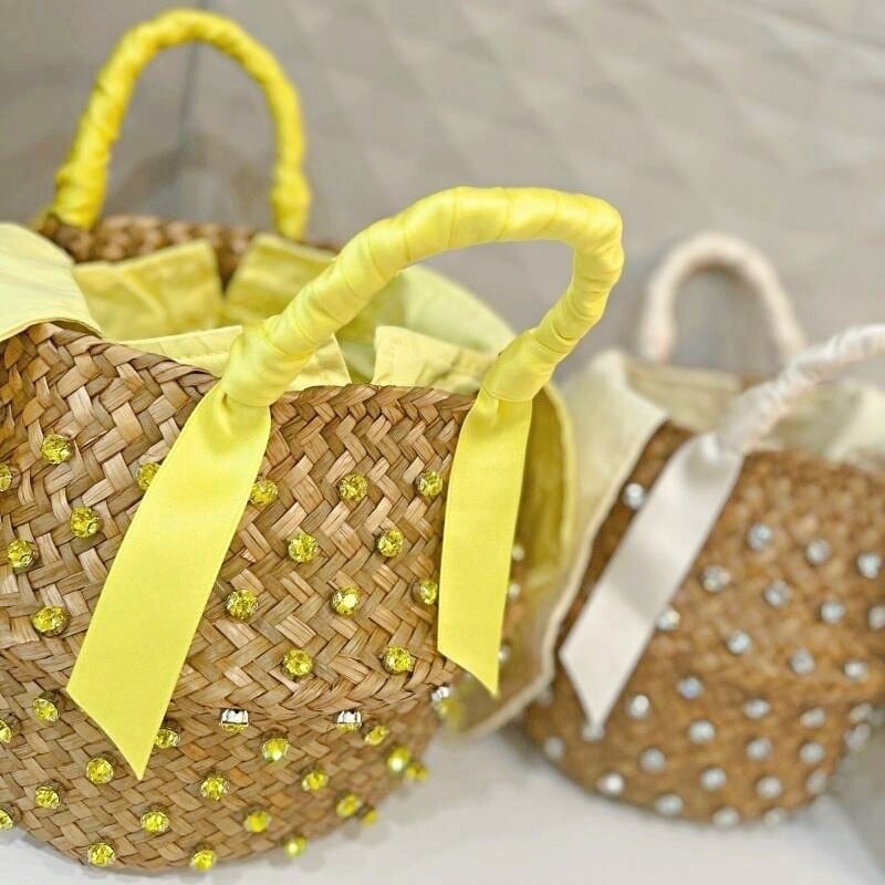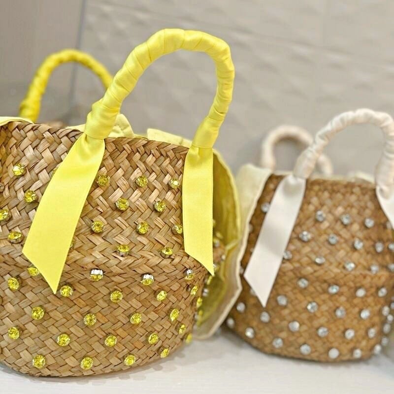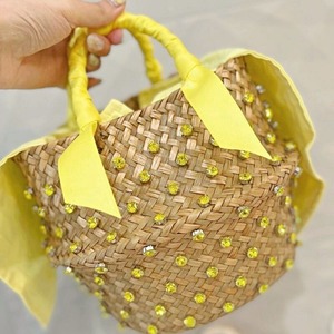 全4色/Jewel straw basket bag M095