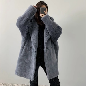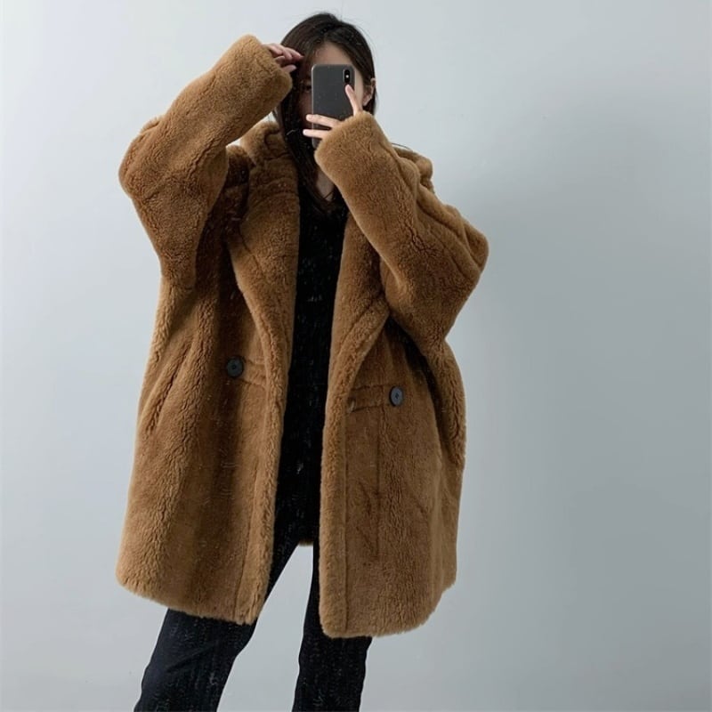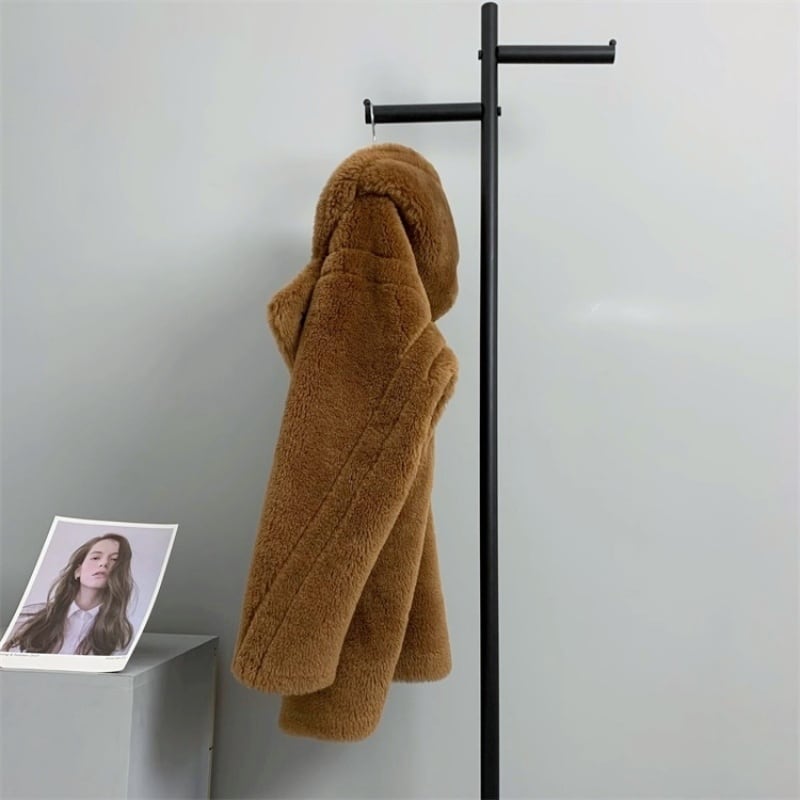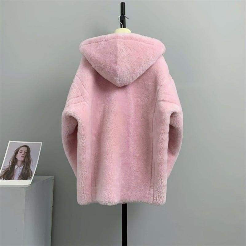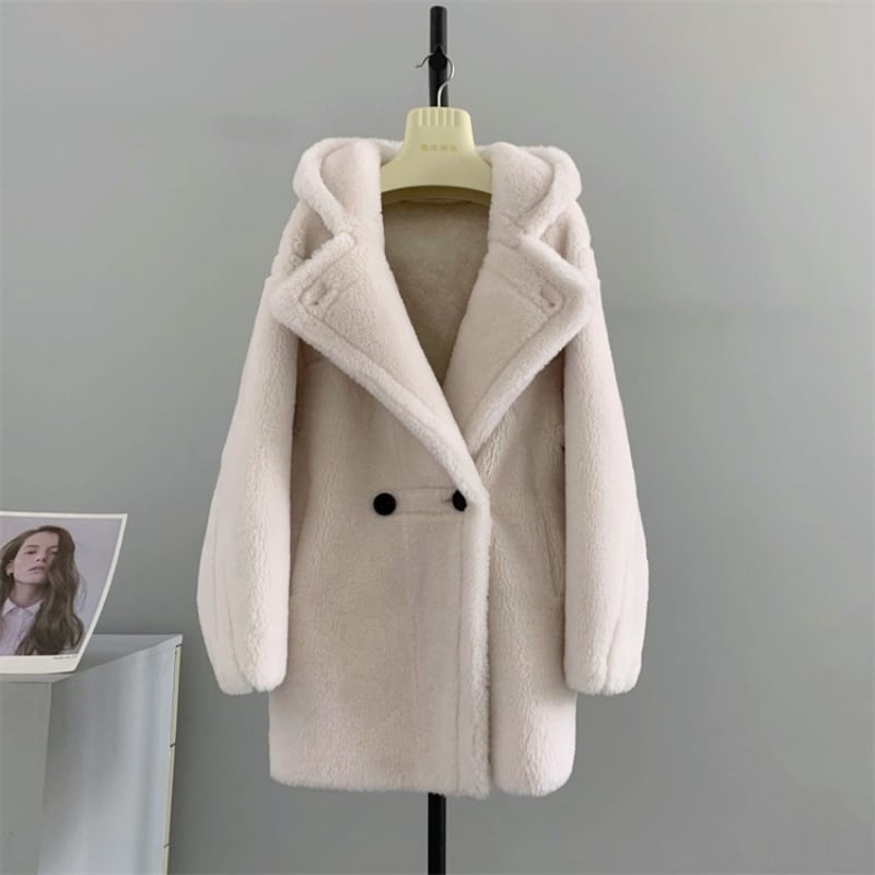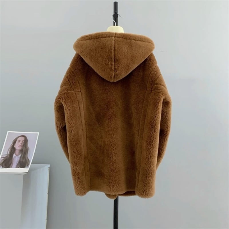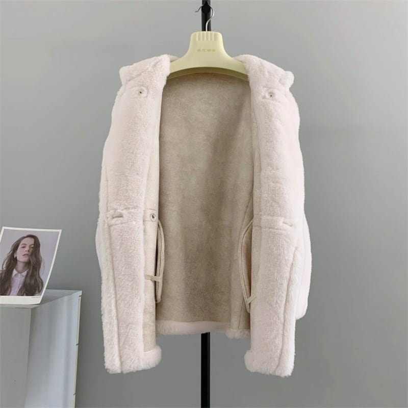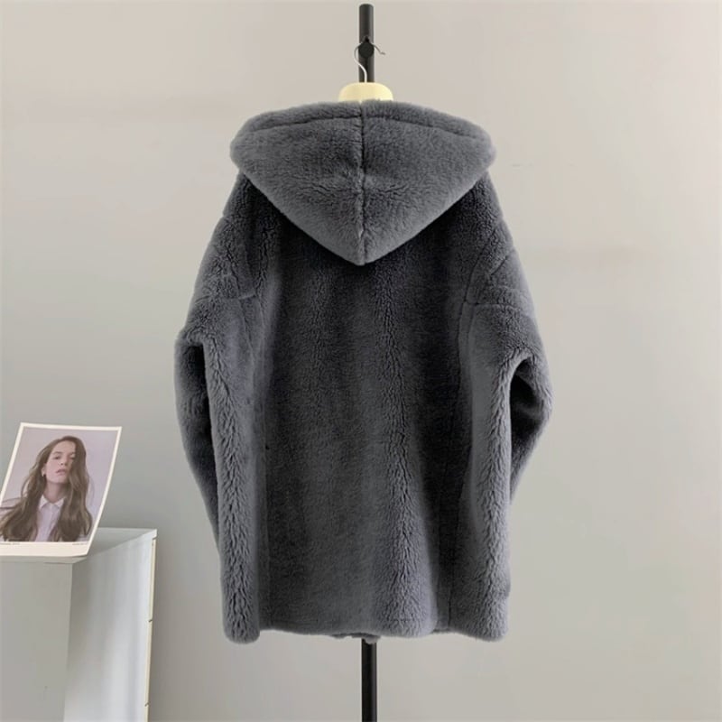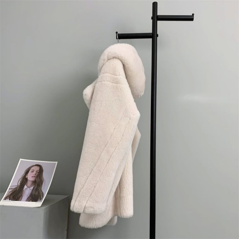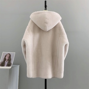 全4色/Hooded wool boa midi coat M3806
