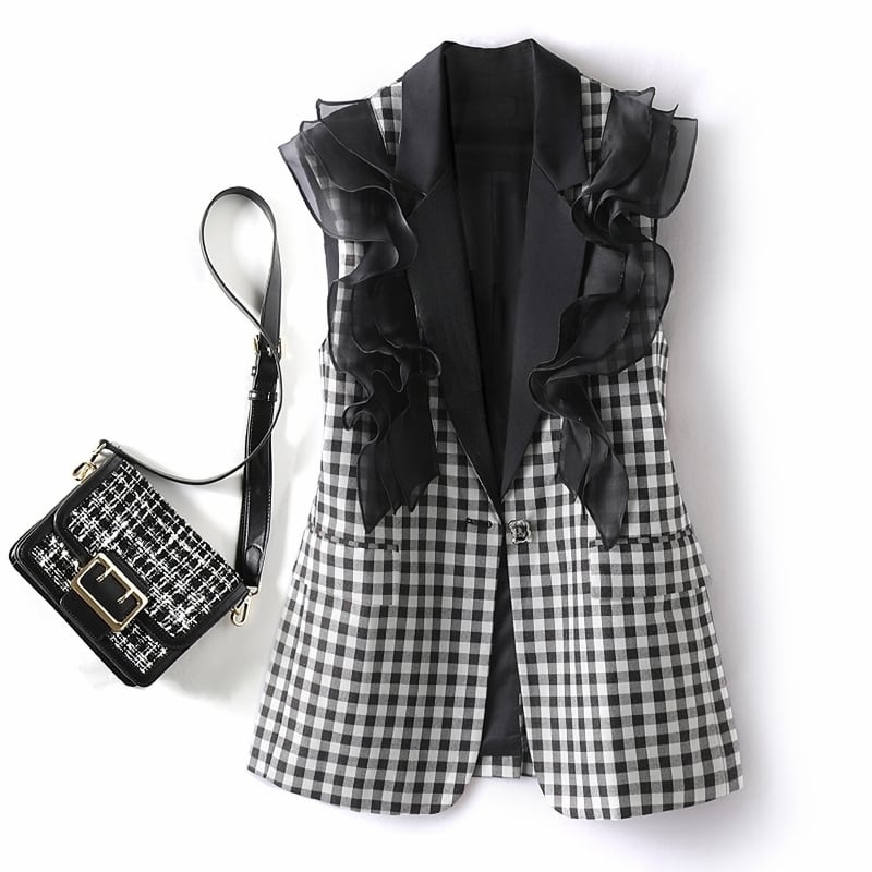 Gingham check frill gilet M4823