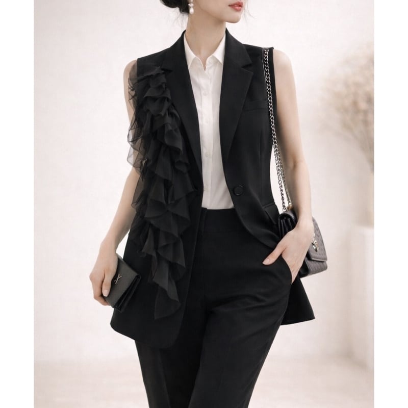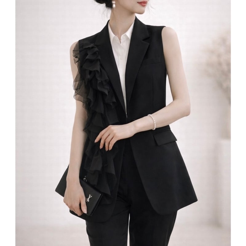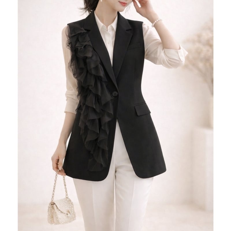 Asymmetry chiffon frill gilet M4824