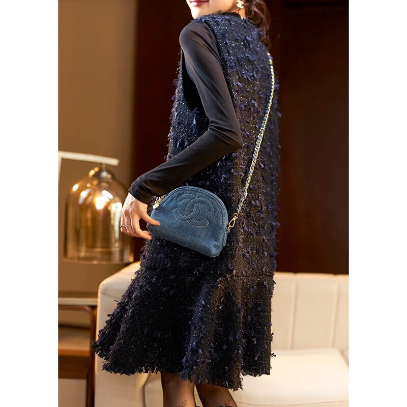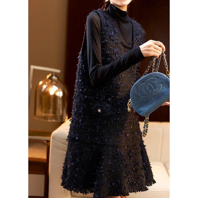 Mixed yarn tweed flare dress B311