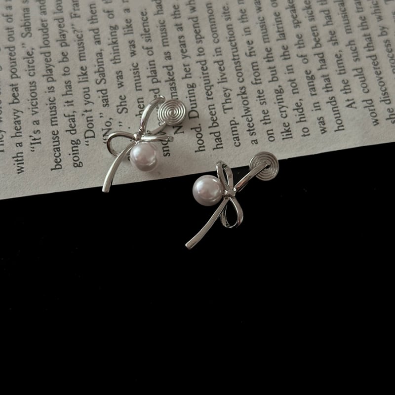 Ribbon rope pearl pierce & earring M1086