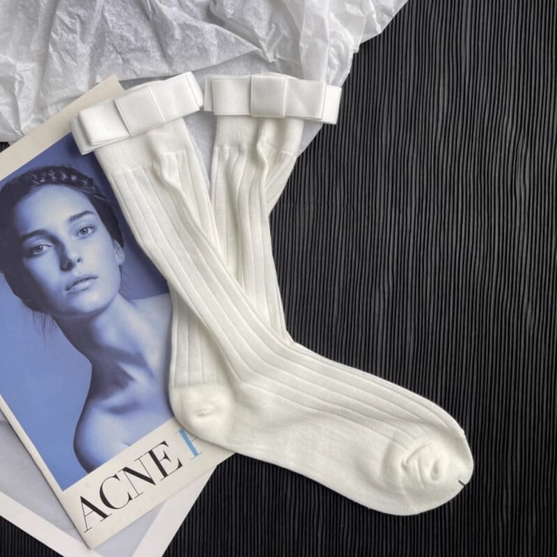 全4色/Top ribbon rib socks B1173