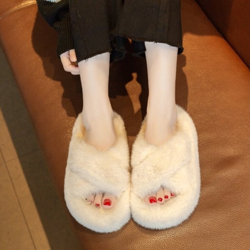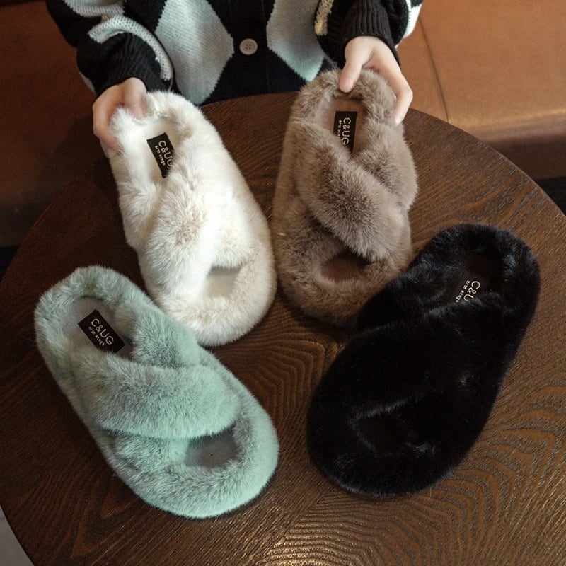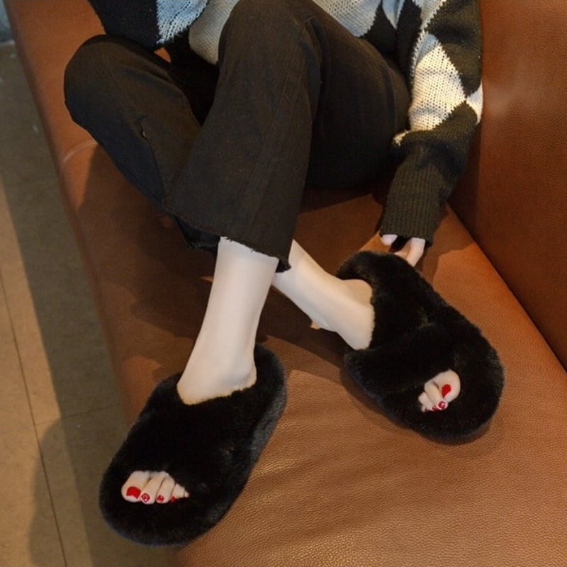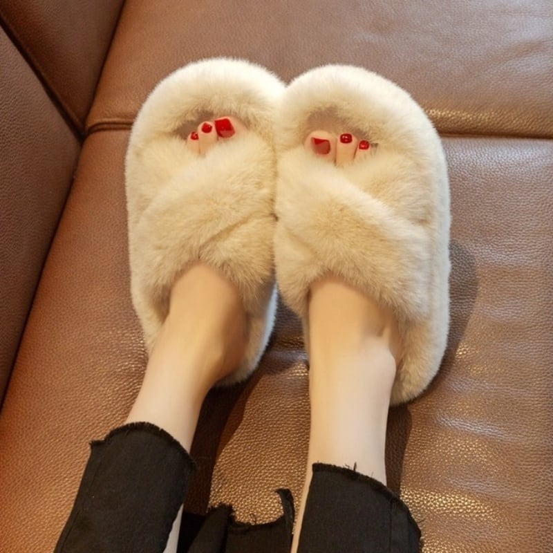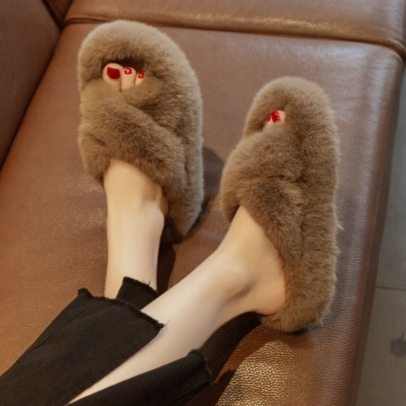 【35-40】Fur cross slipper sandal B1438