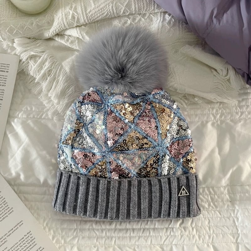 全6色/Multi sequins fur beanie M2331