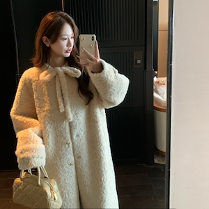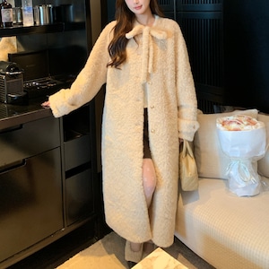 Bowtie long fur coat M2073